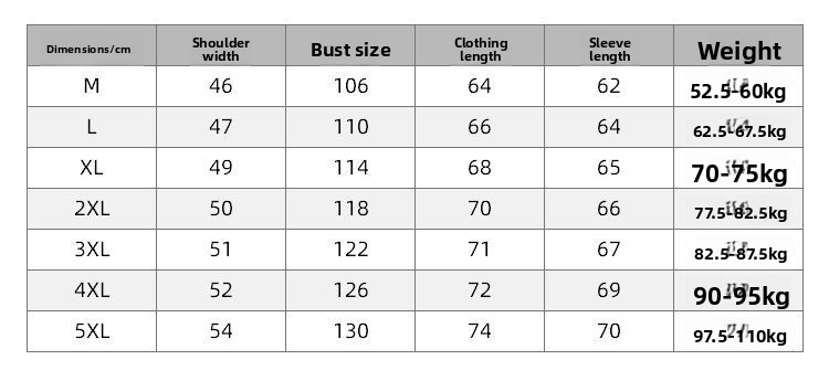 Sizes: M, L, XL, 2XL, 3XL, 4XL, 5XL